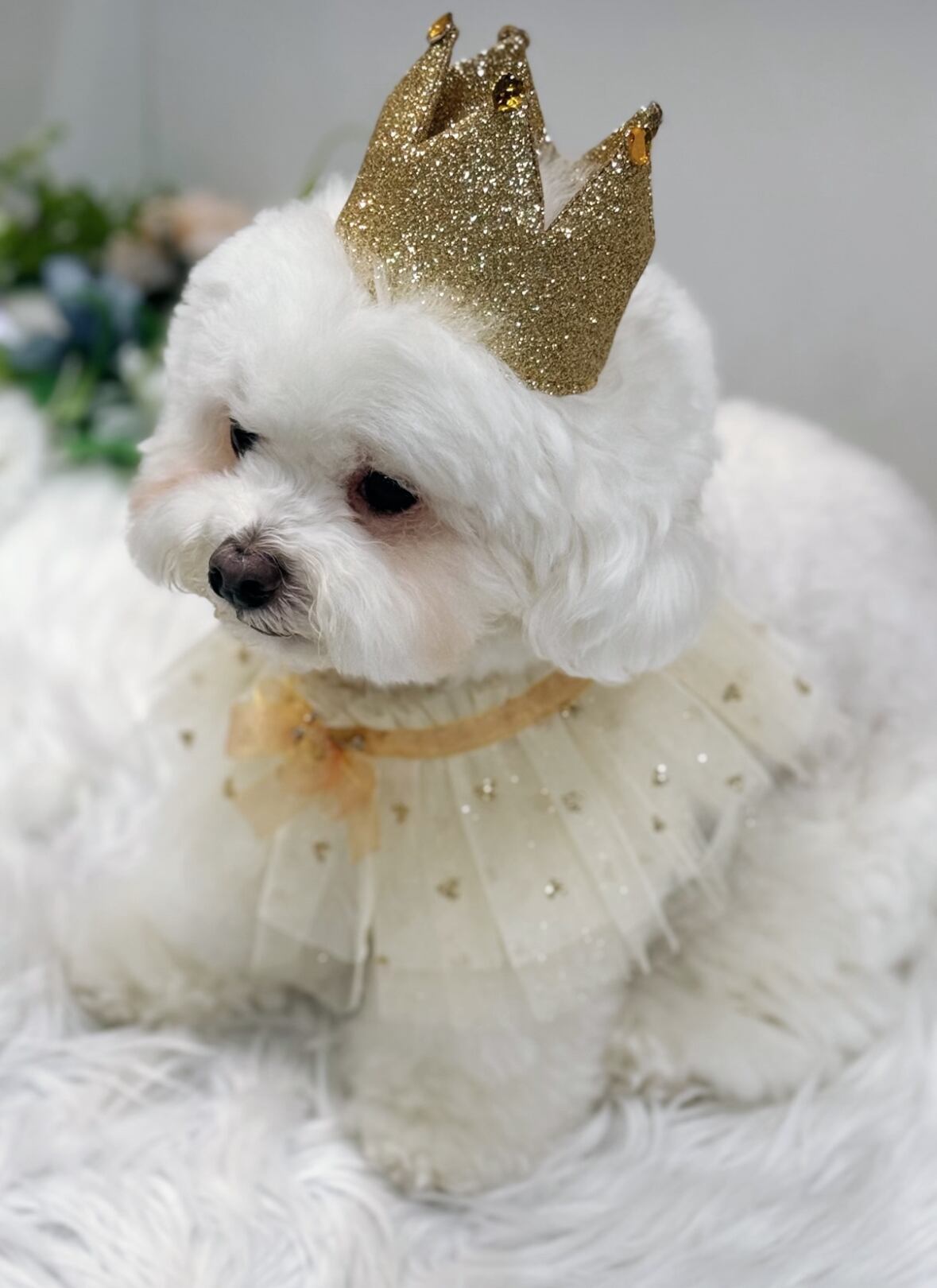 グリッター素材クラウンとチュールレースの