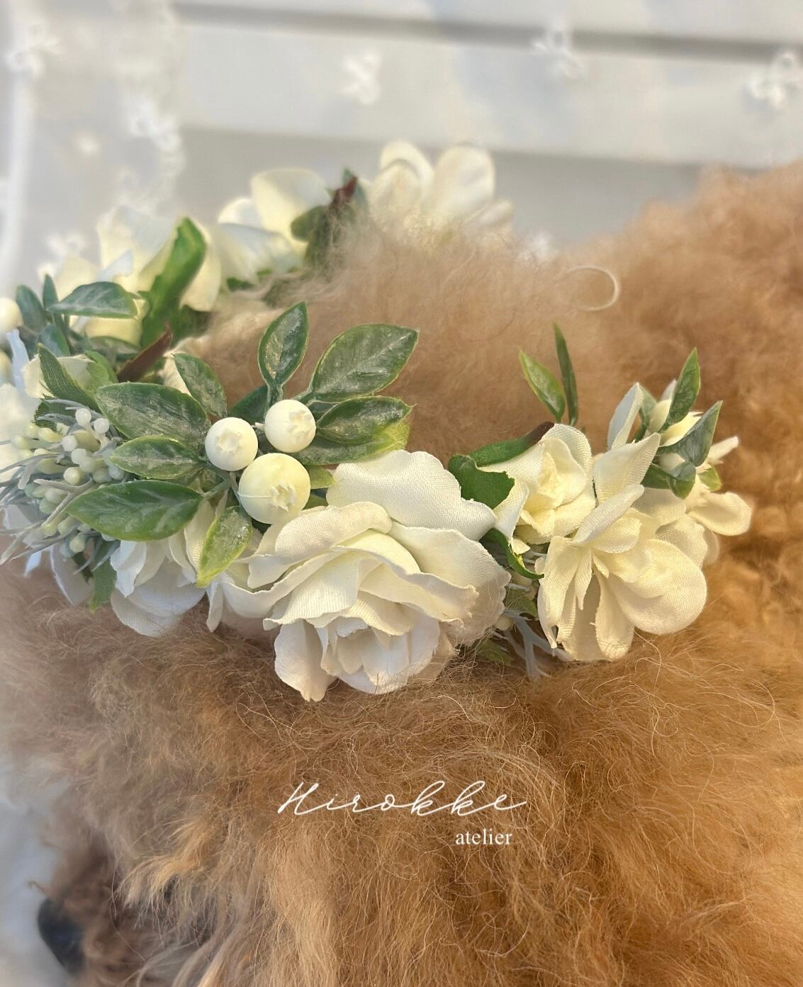 【抽選販売 】 わんちゃん用花冠 White pure Flower crown