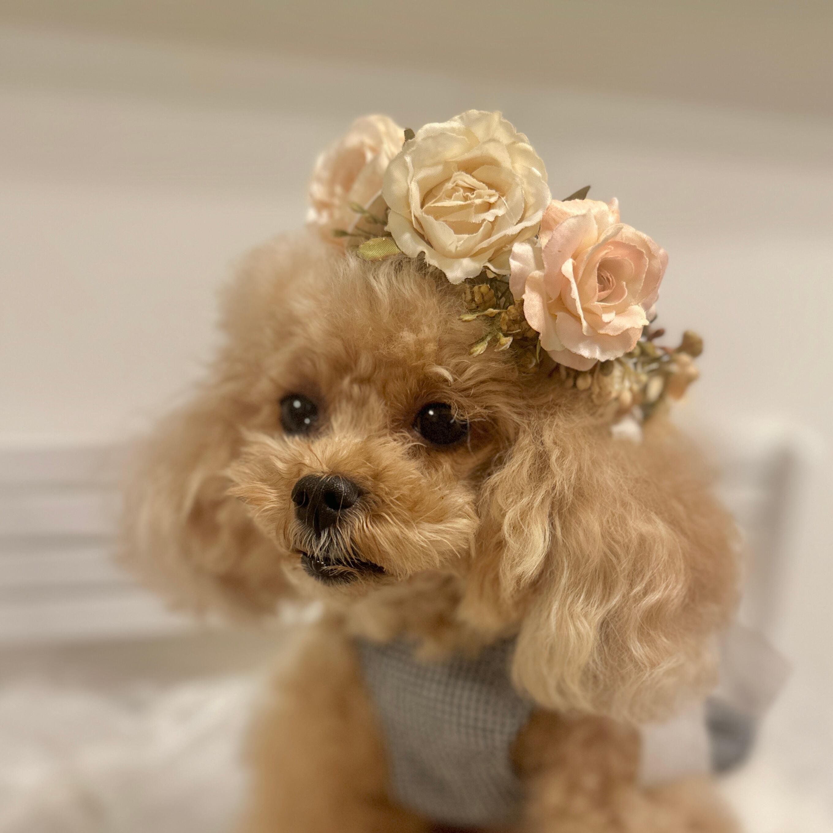 ✔︎花冠は、ワイヤー入りでわんちゃんの頭の形に沿って整えていただくことが可能