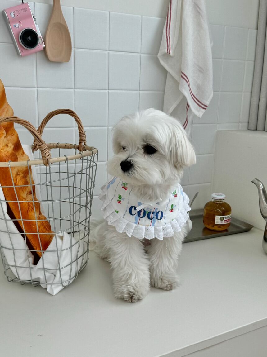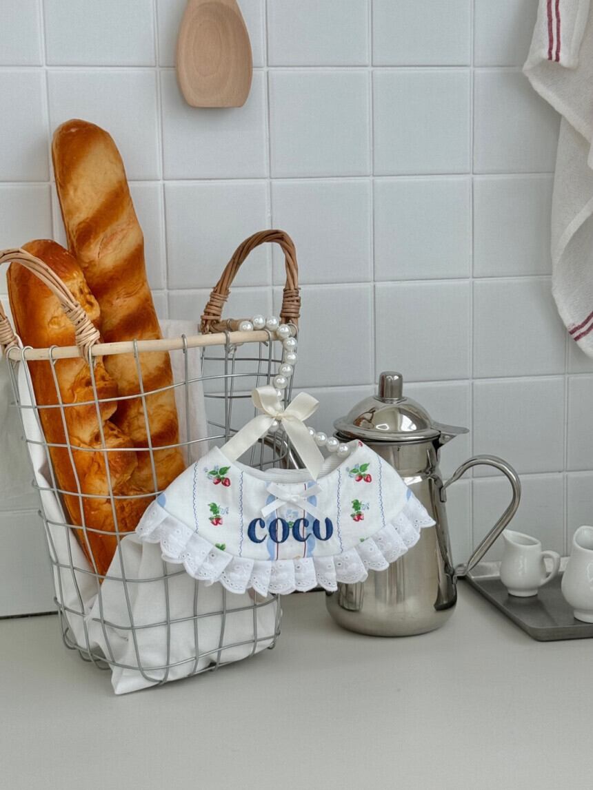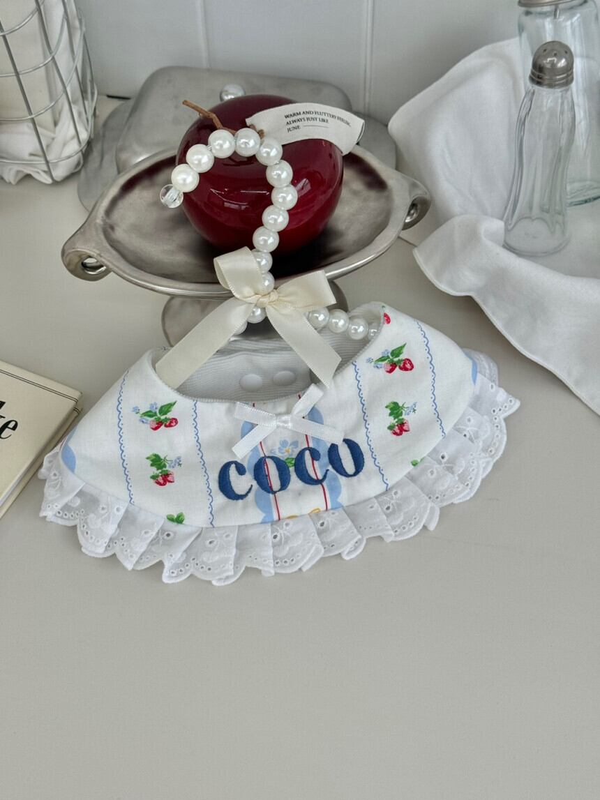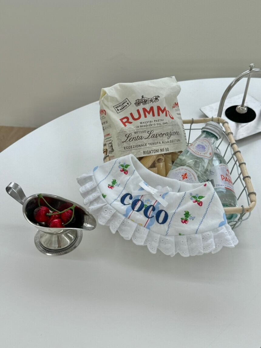 予約販売 ribbon strawberry Dog Embroidery Lace Cape 韓国犬服