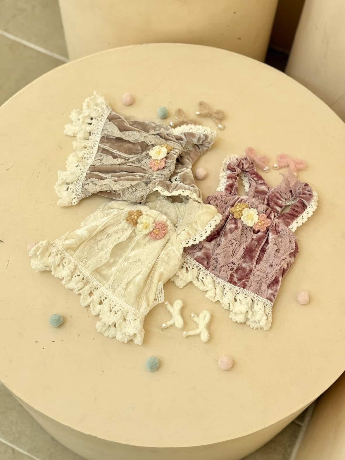柔らかなベルベットの質感と繊細なレースを組み合わせ、ロマンチックで心地よい冬の雰囲気を演出します。