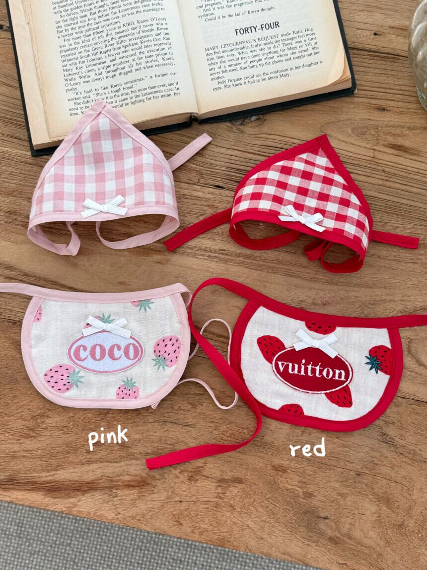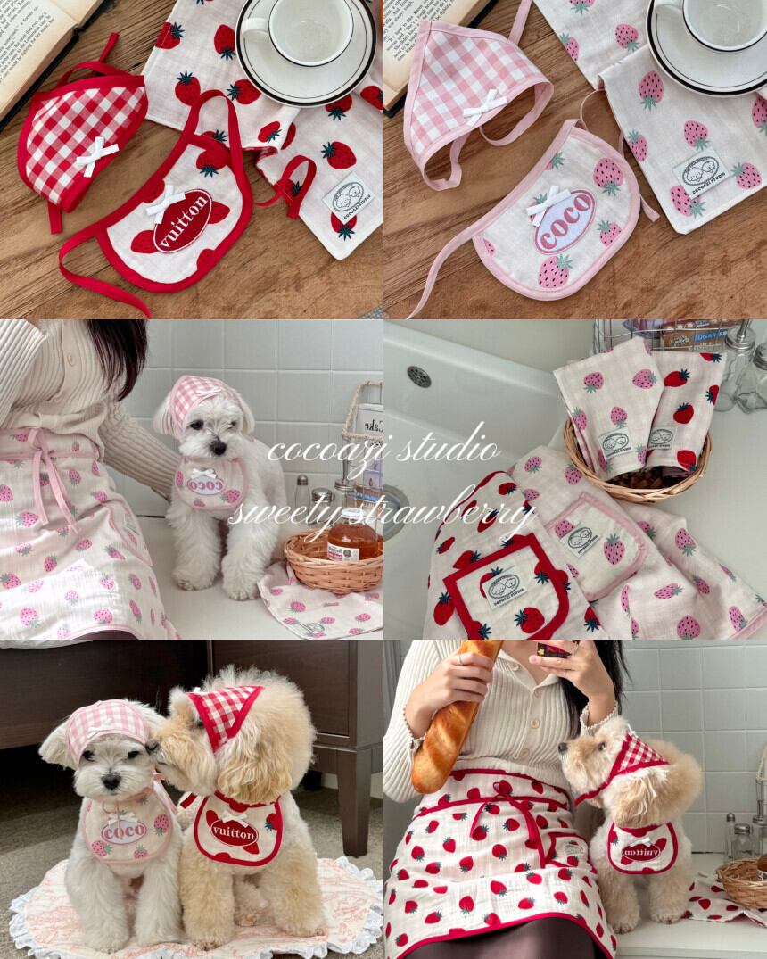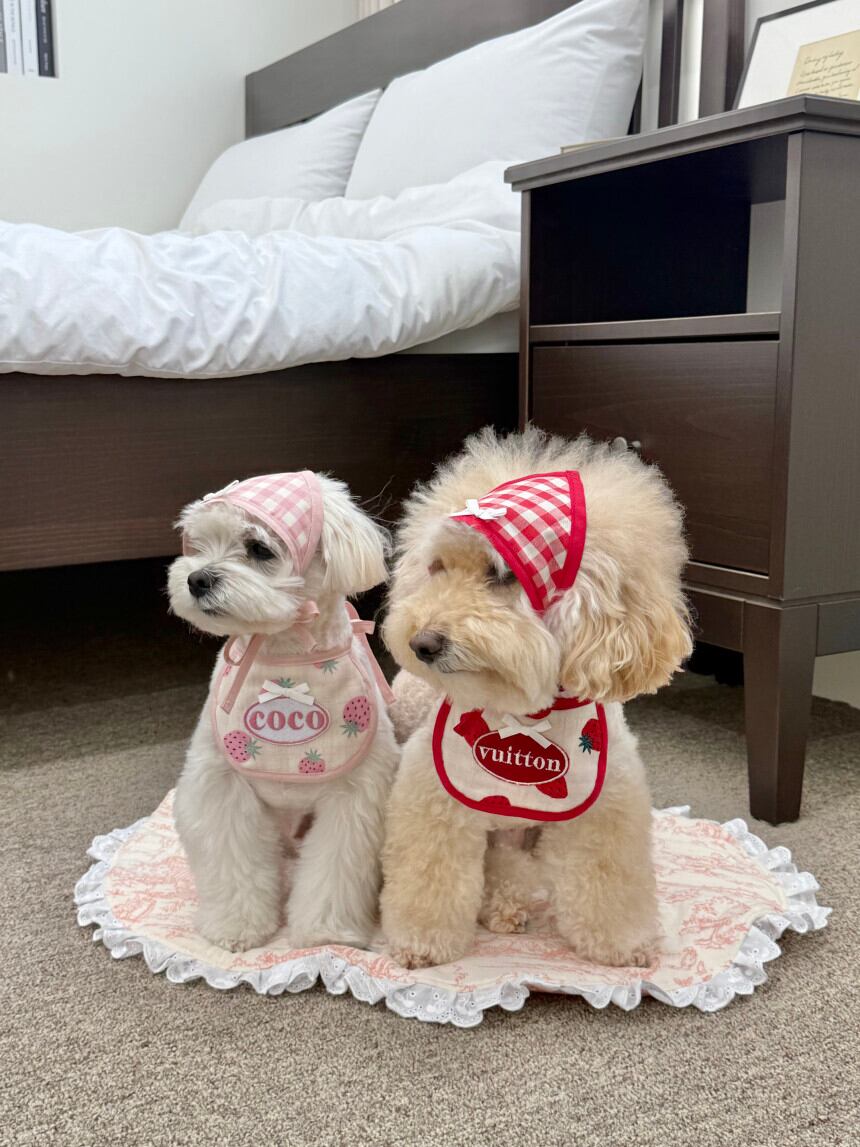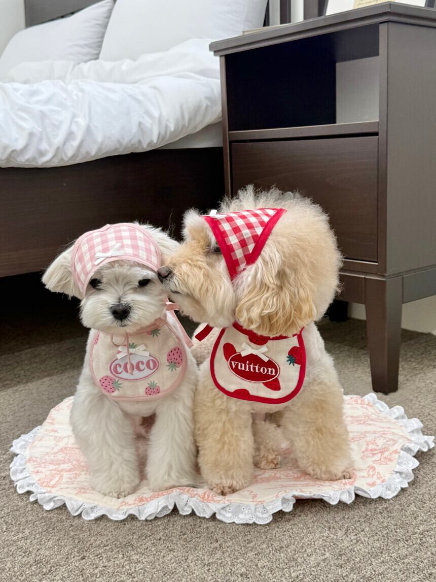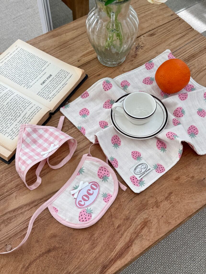 予約販売 バンダナ付き strawberry Embroidery Patch Cape Naming bib 韓国犬服