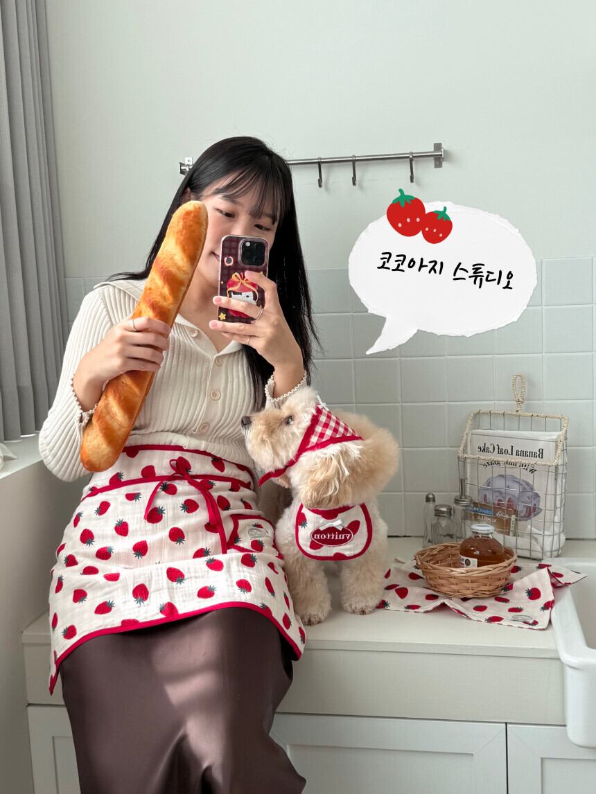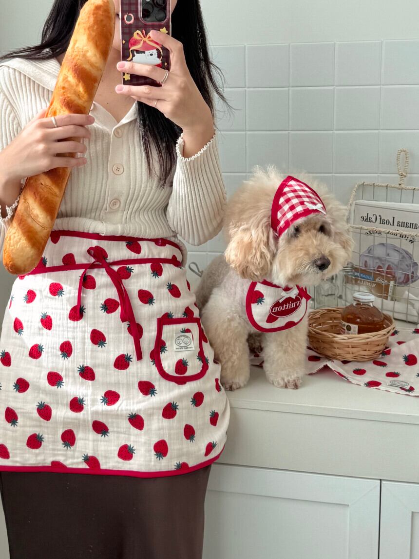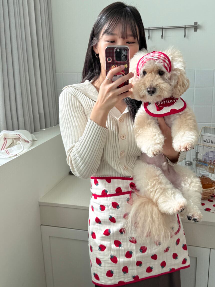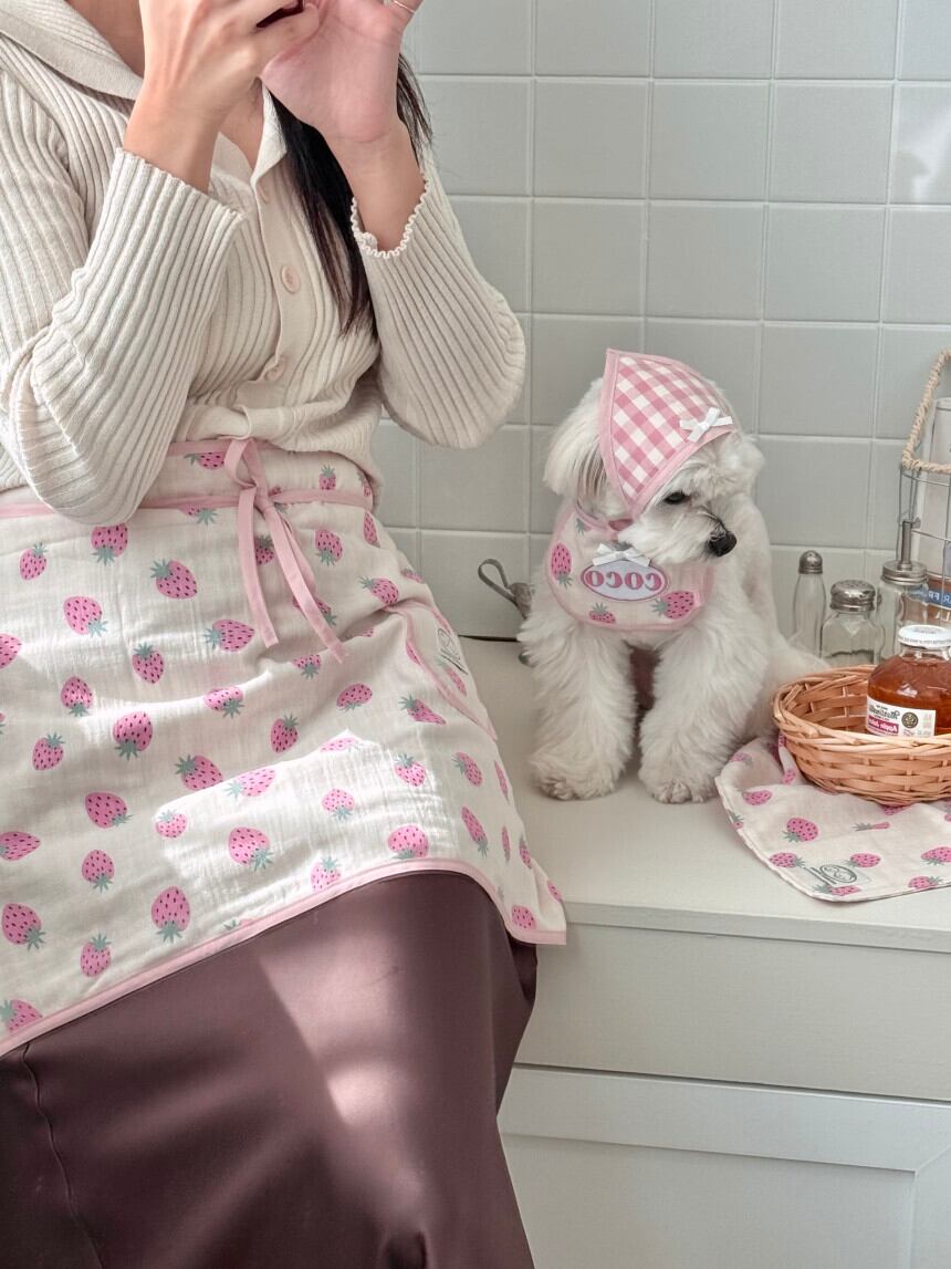 予約販売 バンダナ付き strawberry Embroidery Patch Cape Naming bib 韓国犬服