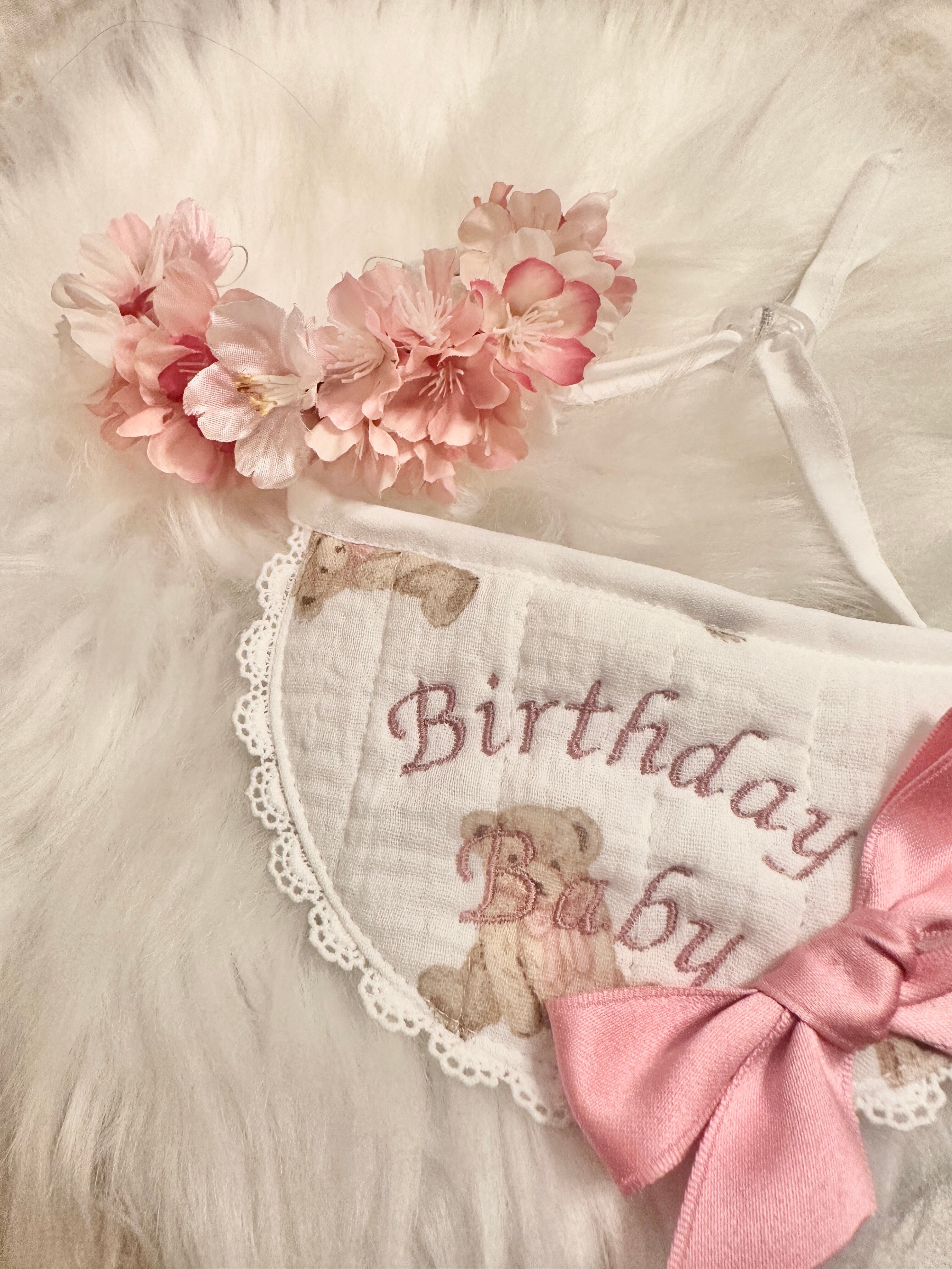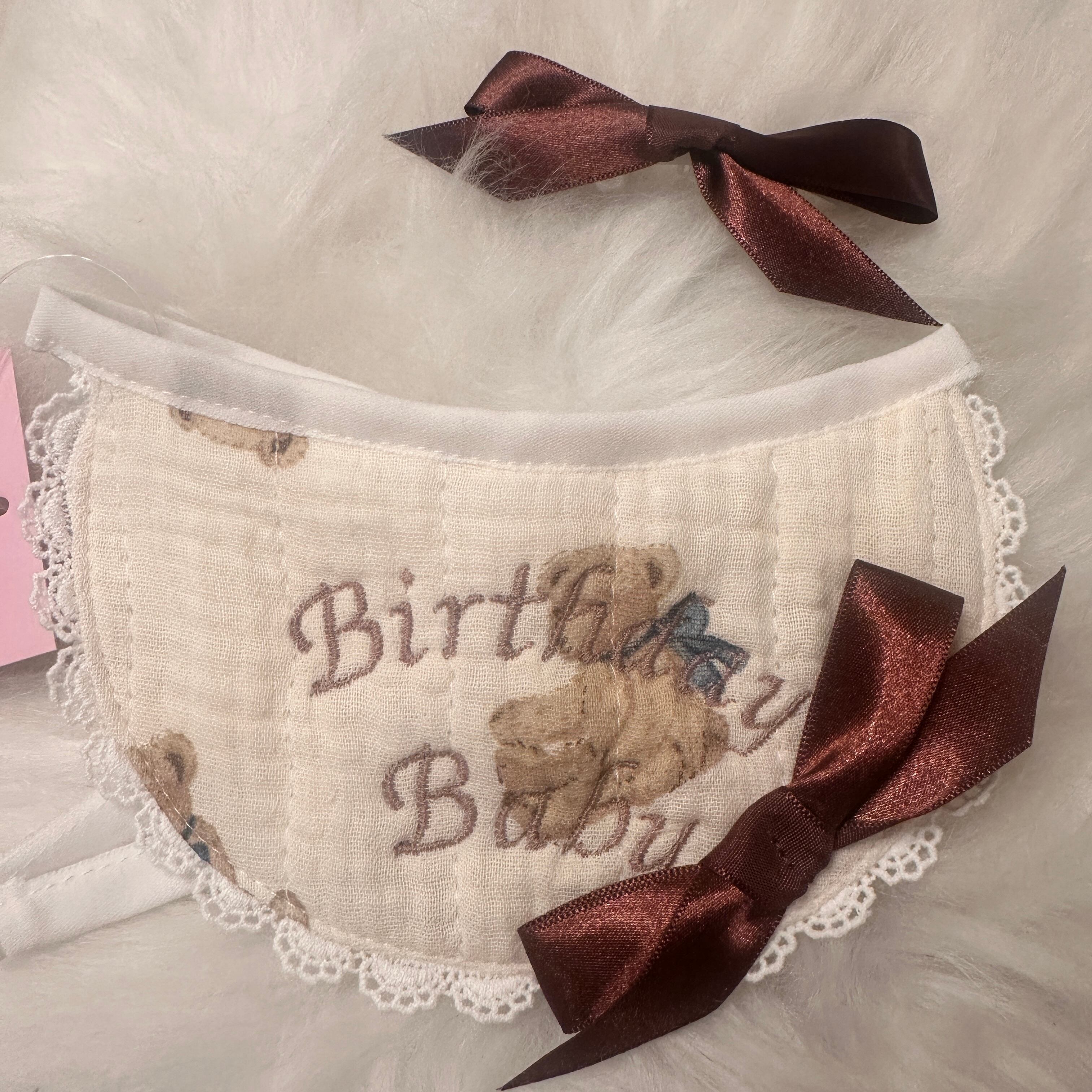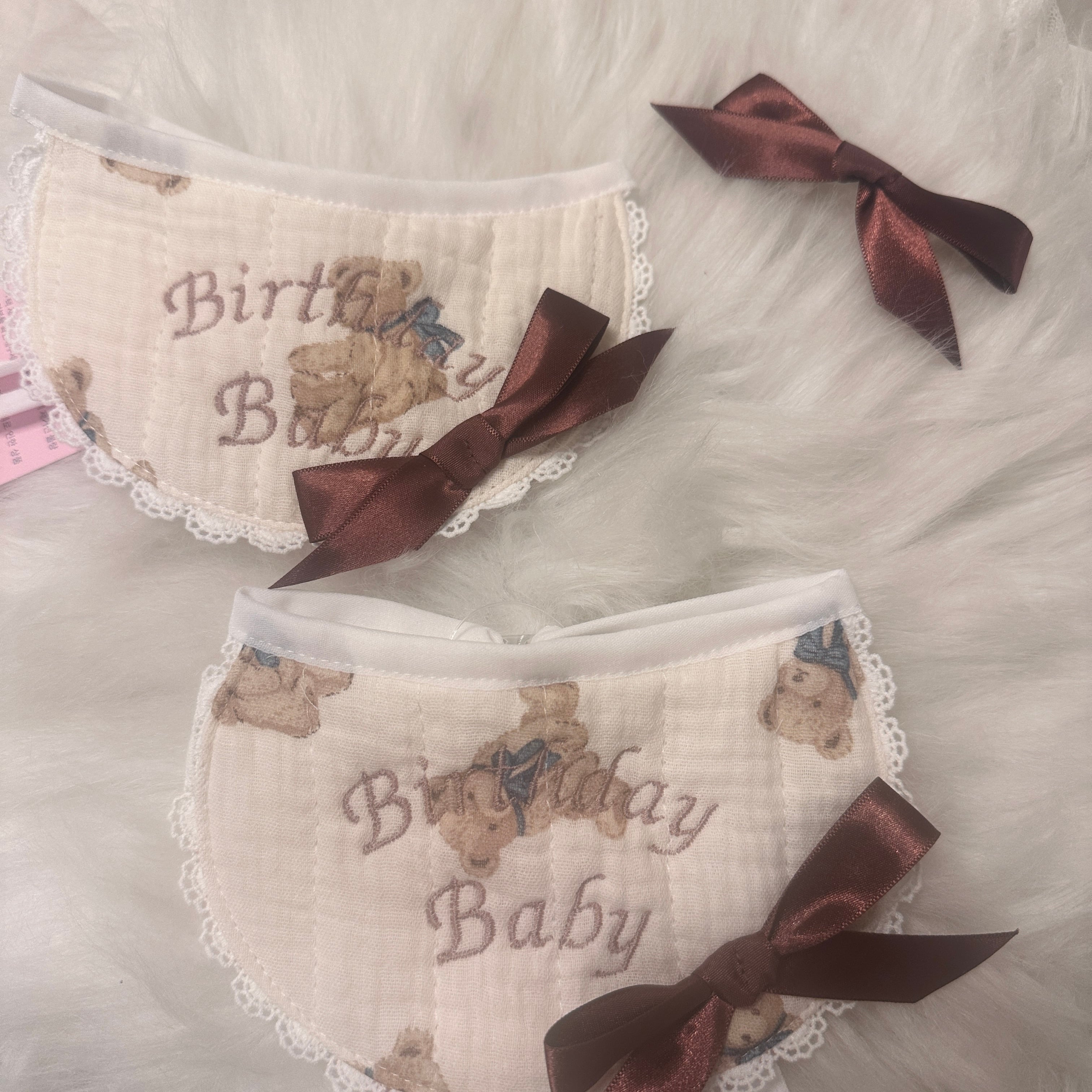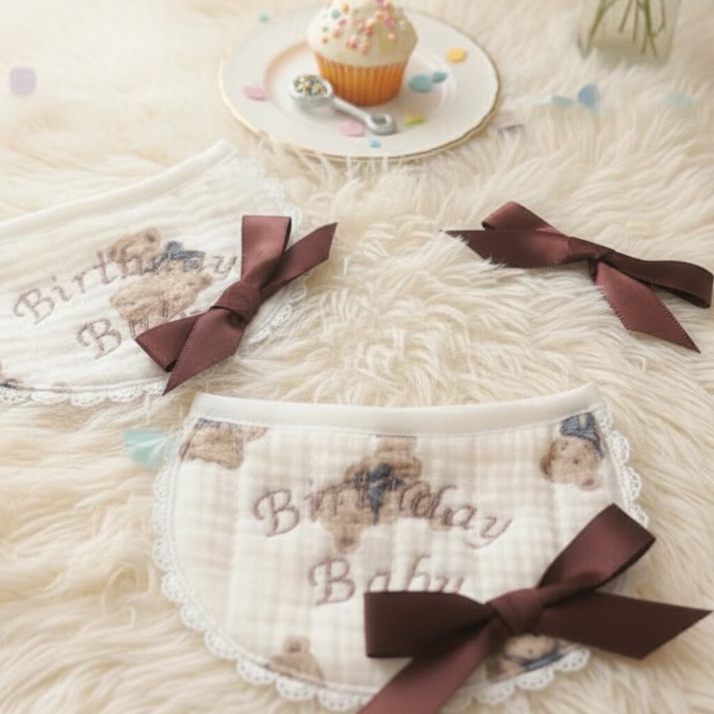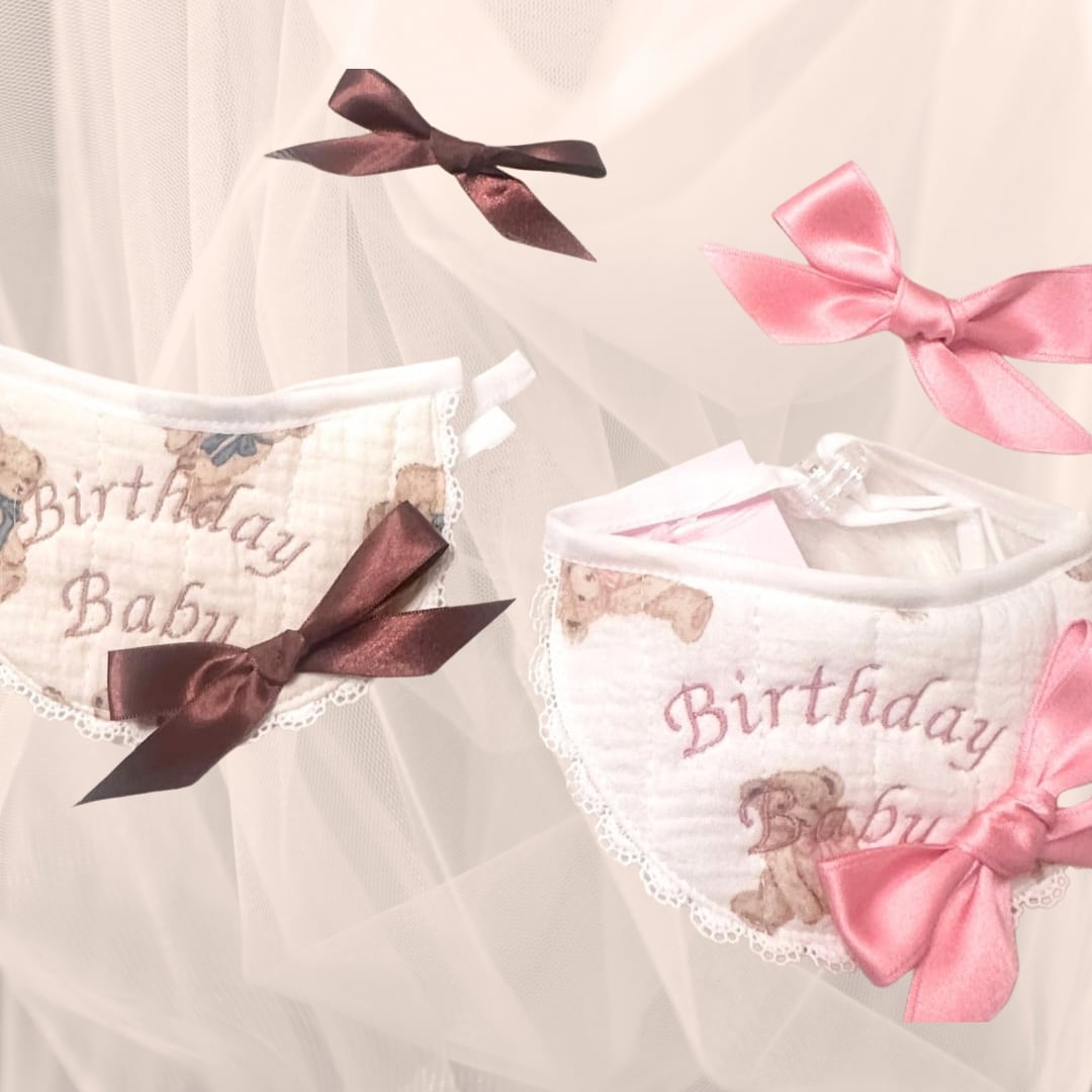 即納販売 [brown]birthday bear Bib (サテンヘアピン付き) 韓国ハンドメイドブランド