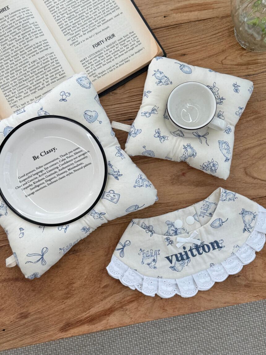 即納販売 Paper Rabbit Dog Food bowl coaster フードボールコースター 韓国犬服 cocoazi