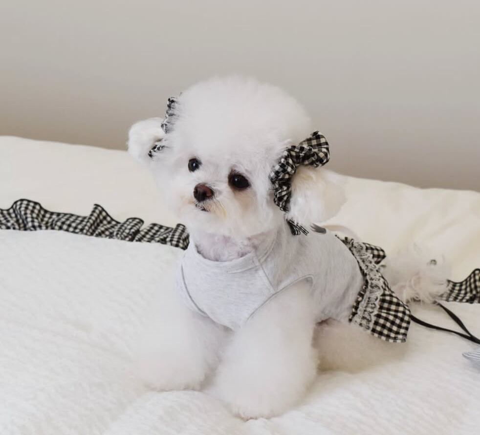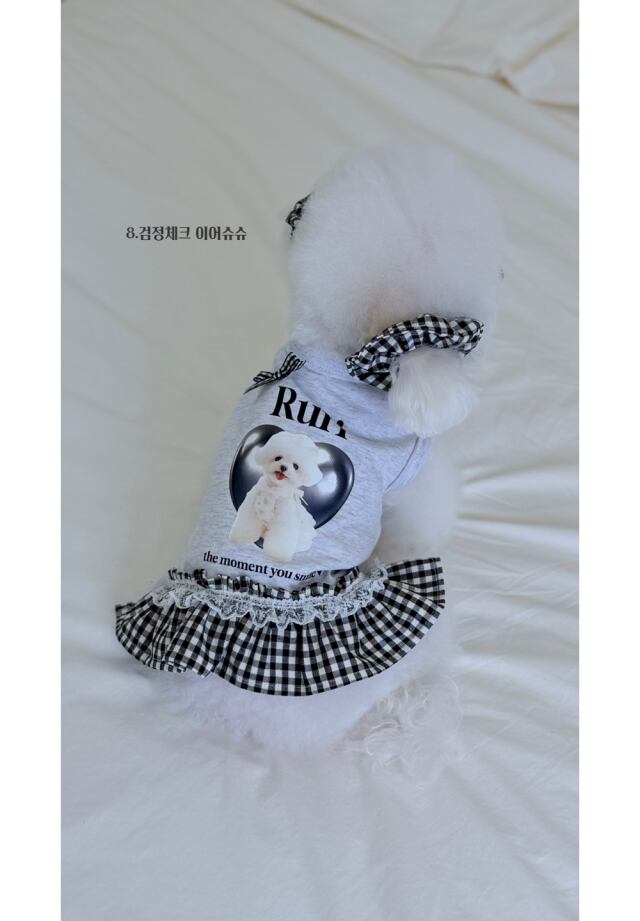 即納販売 BLACK check 犬用イヤーシュシュ 韓国犬服