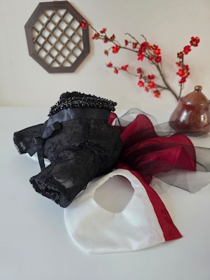 ブラックレースのチョゴリ+ブラックの裏地+ブラックビーズのブローチ+ブラックベースのビーズ衿(トンジョン)