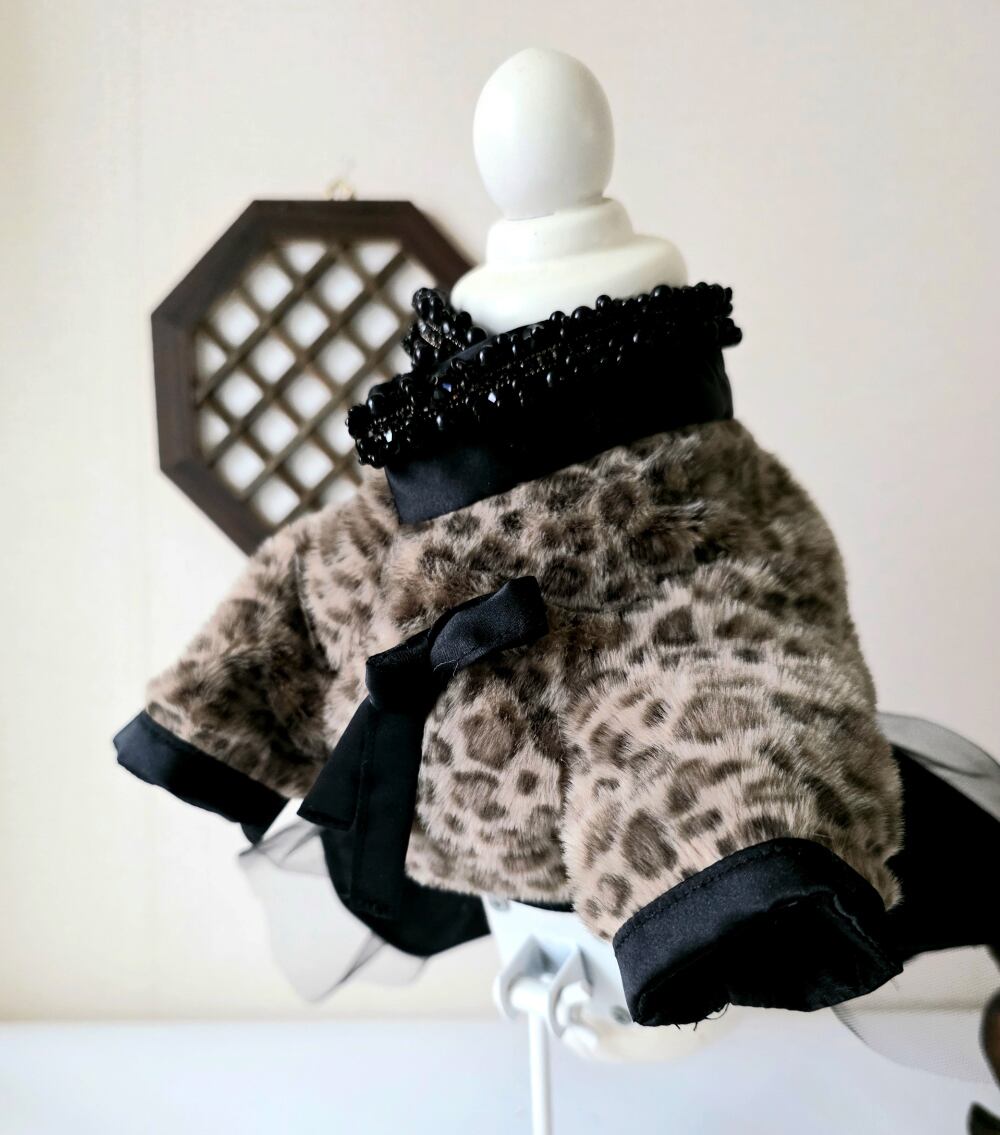 毛足はとてもふわふわですが、驚くほど軽いレオパード柄のファー生地で仕立てたチョゴリです。