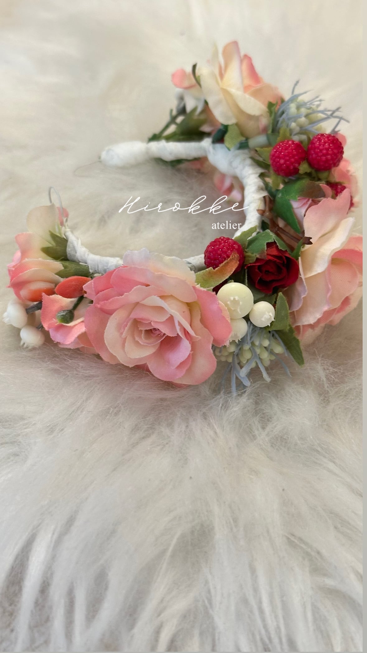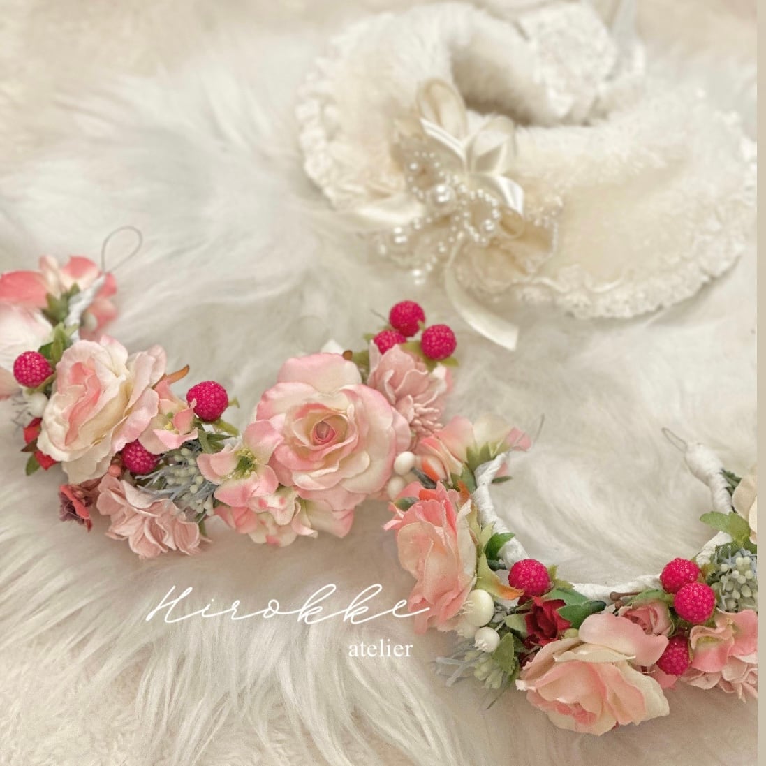 【抽選販売 -2】 わんちゃん用花冠 Berry Rose Flower crown