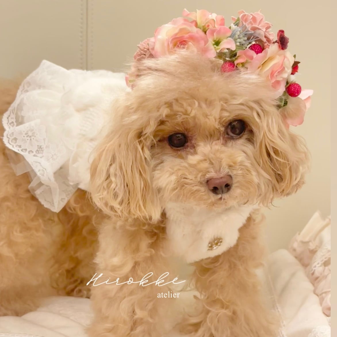 ✔︎花冠は、ワイヤー入りでわんちゃんの頭の形に沿って整えていただくことが可能