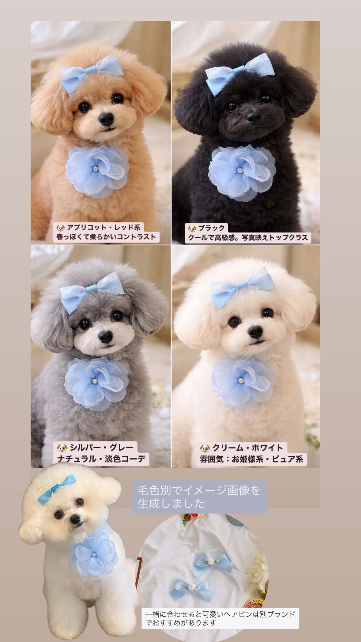 ・高級リボンを贅沢に使用し、小型犬から大型犬まで美しく着用可能