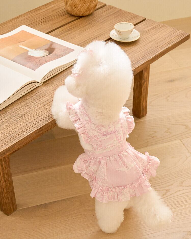 即納販売 Toile de Jouy Overall One Piece (Baby Pink) 韓国犬服 kiki&nini