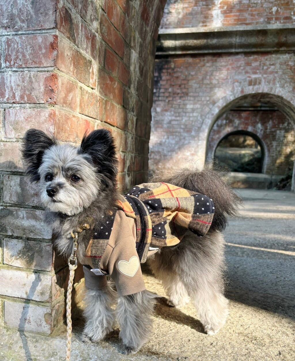 即納販売 ウールチェックサロペットワンピース 韓国犬服 Haneul Mungmung