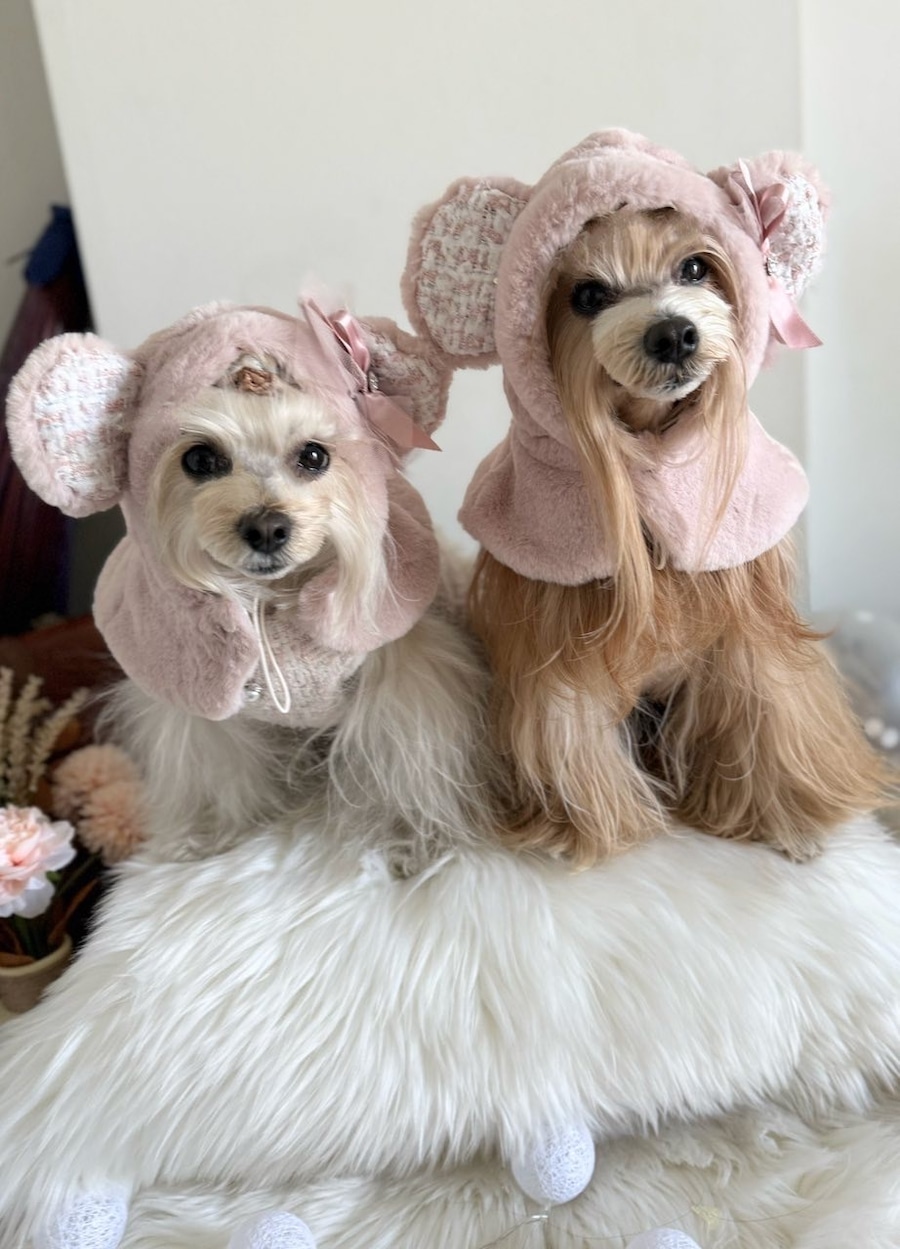 即納販売 Mink Bear Cape ミンクベアケープ (pink) 韓国犬服